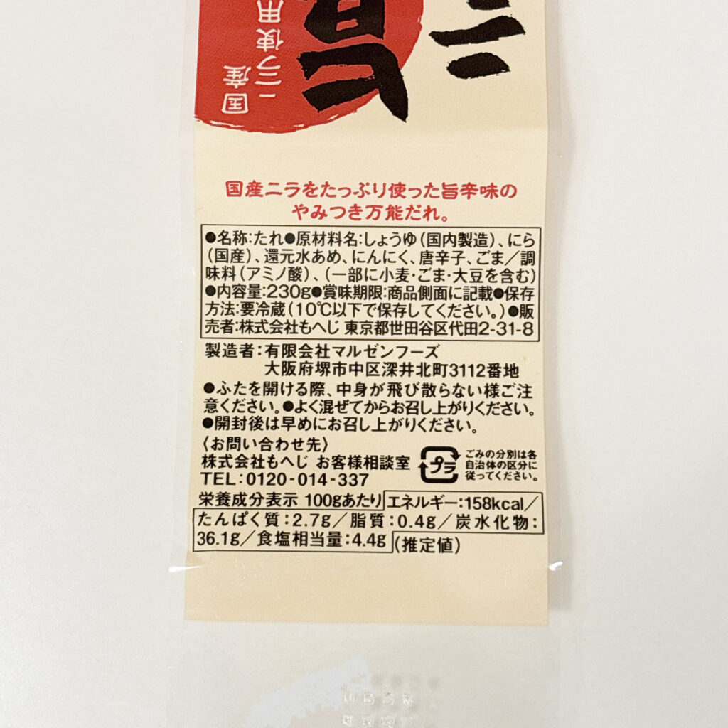 原材料は、しょうゆ・にら・にんにく・唐辛子・ごまなど。